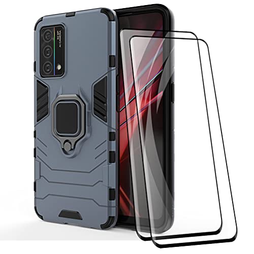 DOINK Cover Armor per Realme GT Master Edition, Custodia TPU+PC Antiurto con Anello Supporto [con 2 Pezzi Vetro Temperato Pellicola Schermo ] - Blu