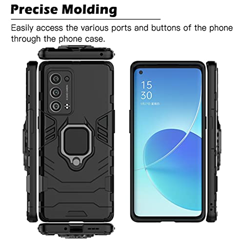DOINK Cover Armor per Oppo Reno6 PRO 5G, Custodia TPU+PC Antiurto con Anello Supporto [con 2 Pezzi Vetro Temperato Pellicola Schermo ] - Nero