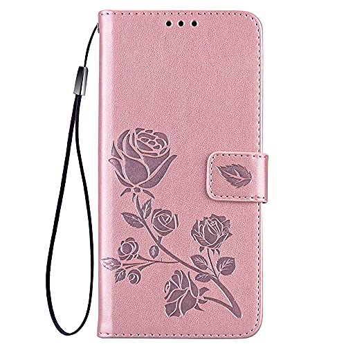 DOINK Cover Rosa in Rilievo per Samsung Galaxy A22 (4G Edition) / Samsung M22, PU Pelle + TPU Silicone Custodia Case con Carte Slot Portafoglio - Oro Rosa