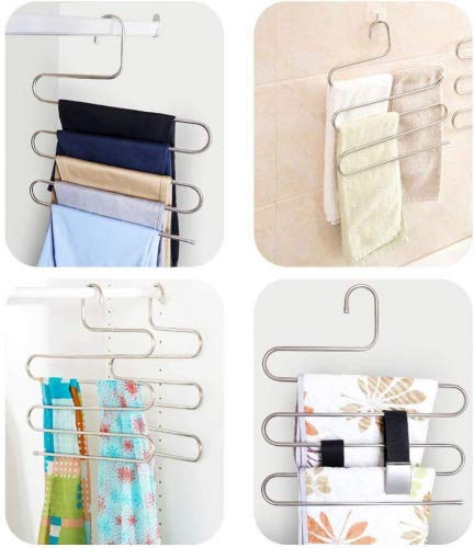 Doiown gruccia appendiabiti in acciaio INOX per pantaloni, antiscivolo, per jeans, sciarpe, a forma di S 2 Pieces