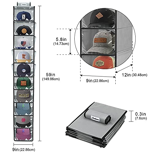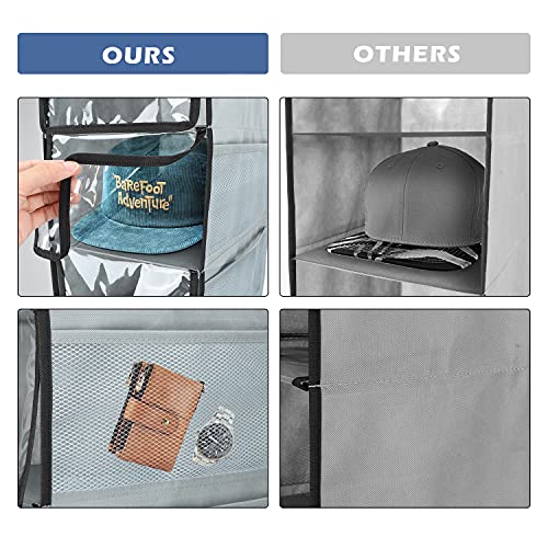 DOIOWN Porta Cappelli, 10 Ripiani Organizer per Cappelli, Armadio Salvaspazio, Portaoggetti da Appendere, Organizer per Guardaroba con Copertura Antipolvere e Tasche Laterali in Rete
