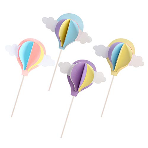 DOITOOL - Decorazioni per Torte Creative, 4 Pezzi, con Mongolfiera, Decorazione per Torte, Decorazioni per Cupcake, Feste di Compleanno e Matrimoni, Colori Casuali