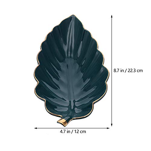 DOITOOL Piatto di stoccaggio dei gioielli in ceramica stile nordico piatto di gioielli creativo a forma di foglia vassoio di