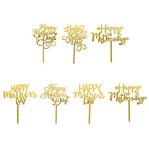 DOITOOL Topper per Torta per Festa della Mamma, 7 Pezzi, Decorazioni per Torte Fai da Te in Acrilico, Decorazione per Torte Fai da Te per Feste in casa (Motivo Casuale)