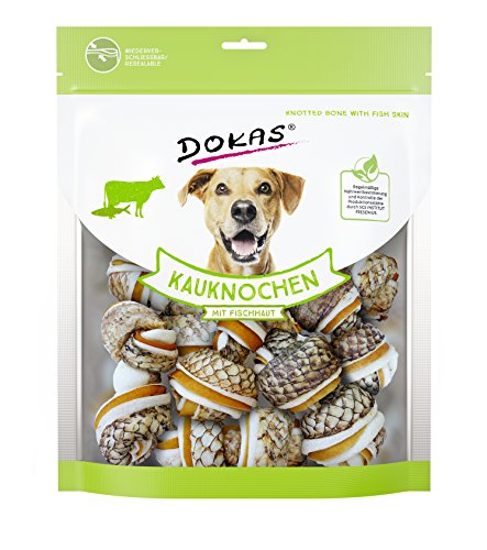 Contenuto della confezione: 1 x 250 g di Osso da masticare Dokas con pescio/pelle bovina combinata con pelle di pesce / mangime complementare per cani.