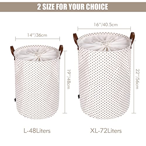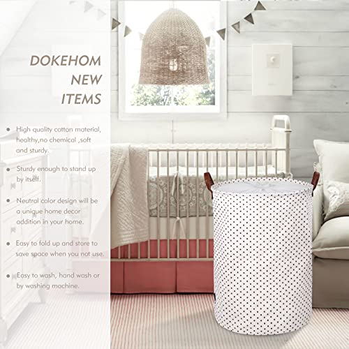 DOKEHOM 19-Inches Ispessimento Raggruppabili Round Stoccaggio Paniere, Cotone (Marrone Punti, L)