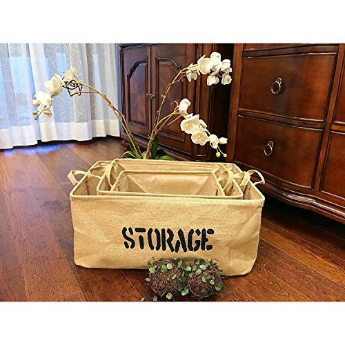 DOKEHOM DKA0614BNL 17" iuta Grandi Cestini da scaffale(14", 17" e 22"), Stoccaggio Paniere, Ceste per la Biancheria, Raggruppabili Sacchi da Biancheria, Pieghevole Cesta del Bucato (L)