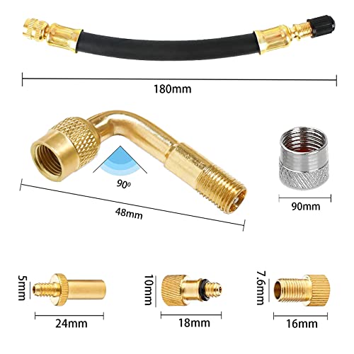[180 mm Valvola Flessibile per Pneumatici]: l'estensione della valvola da 180 mm è uno strumento di gonfiaggio dei pneumatici molto conveniente. Gli steli delle valvole anteriori e posteriori difficili da raggiungere sono facilmente accessibili tramite 180 mm di tubo di gonfiaggio dei pneumatici.