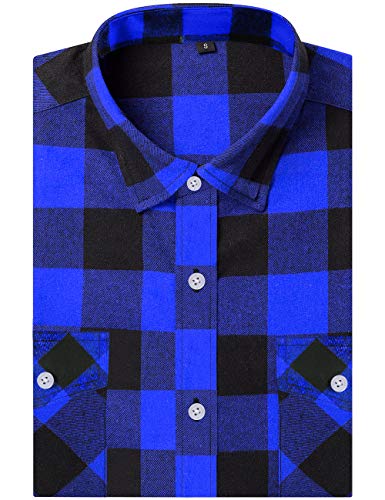 DOKKIA - Camicia casual da donna in flanella, a scacchi, a maniche lunghe, a quadretti, in plaid di bufalo, da lavoro Bufalo blu e nero. XXL