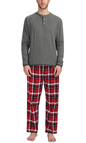 Dolamen Coppie Pigiama per Uomo Cotone, Soft & Smooth Uomo Lunga Primavera Pigiama da Notte Pantaloni Pigiama, Uomo Pigiama Controllare Bottoni Camicia Collare con Pocket (X-Large, Grigio)