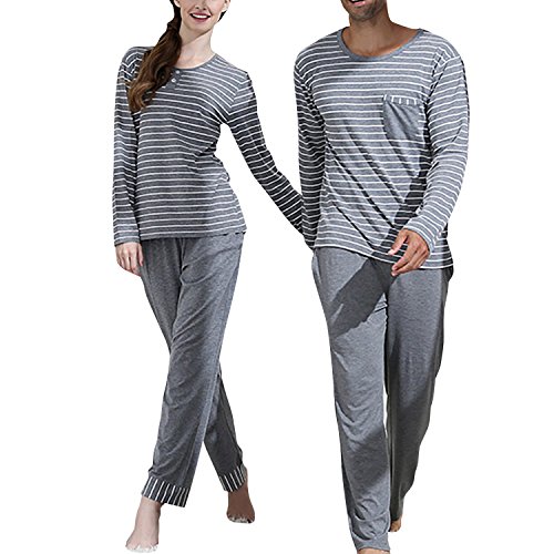 Dolamen Coppie Pigiama per Uomo, Signore Calda Molle Inverno Pigiama da Notte, Cotone Uomo Pigiama Invernale, Manica Lunga Top & Pantaloni con Tasche