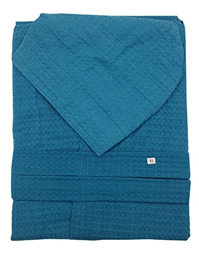 OM DOLCE CASA Accappatoio Unisex Nido D'Ape 100% Cotone Con Tasche e Cappuccio Taglie S, M, L, XL, XXL e 8 Varianti di Colore (L_Large, Acqua)