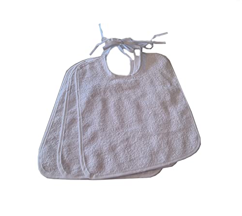 OM DOLCE CASA Bavaglie Asilo Nido Scuola Materna Pappa con Laccetti Cm 30X37 Set 3 Pezzi Colore Bianco Unisex 100% Spugna di Cotone Prodotto in Italia