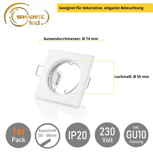 ✅ CONTENUTO - Riceverai 1x Faretto da incasso quadrato 230 Volt in bianco, adatto per lampadine LED GU10 e alogene e 1x portalampada GU10 in ceramica | Le lampadine non sono incluse.
