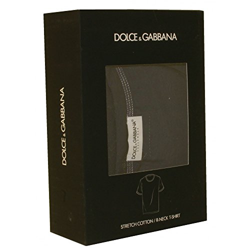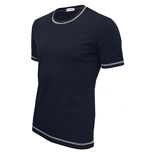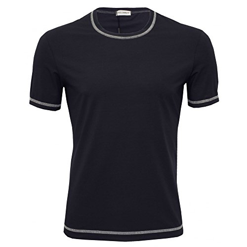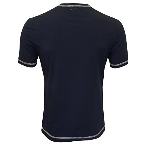 Dolce & Gabbana Contrasto Trim in Cotone Stretch con Marchio T-Shirt Uomo, Blu Marino