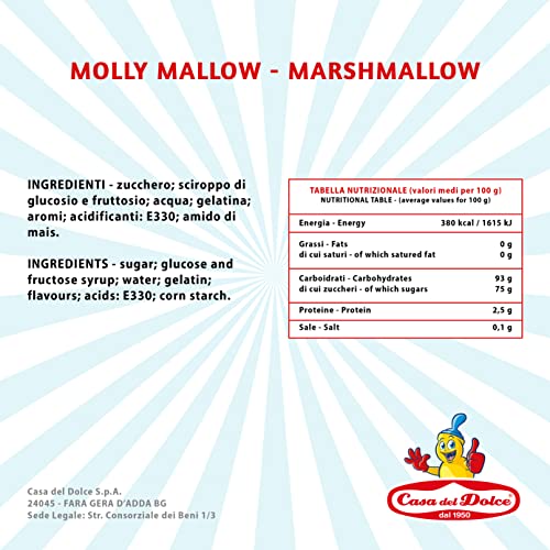 Casa del Dolce Molly Mallow Golf Bianco, Marshmallow Sfuso, 6 Confezioni da 900 Grammi, Made in Italy, Senza Glutine, Idee Regalo per Compleanni e Feste