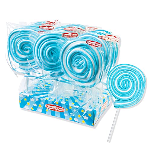 CASA DEL DOLCE Roller Pop Azzurro, Mashmallow Azzurro, Display da 12 Pezzi, Incartati Singolarmente, Confezione da 1000 Grammi, Made in Italy, Senza Glutine, Idee Regalo per Compleanni e Feste