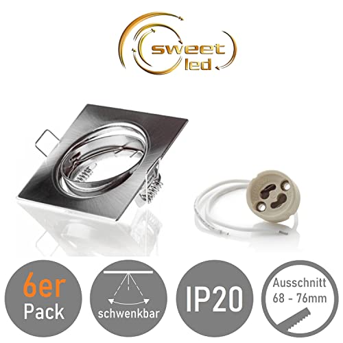 Dolce Telaio da Incasso LED per Fari alogeni e LED, Orientabile, Quadrato, Cromo Spazzolato con Portalampada GU10 Incluso (6 x Cromo Spazzolato)