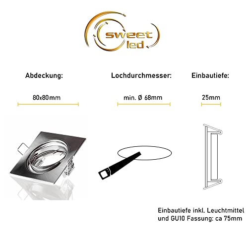 ► TELAI INCASSO SWEET-LED IP20 ◄ | Set da 6: 6x telai - 6x portalampade GU10 | Alta qualità - durata - estetica raffinata | Fari incasso quadrati - Cromo spazzolato | Telaio in metallo | Portalampada in ceramica GU10 incluso
