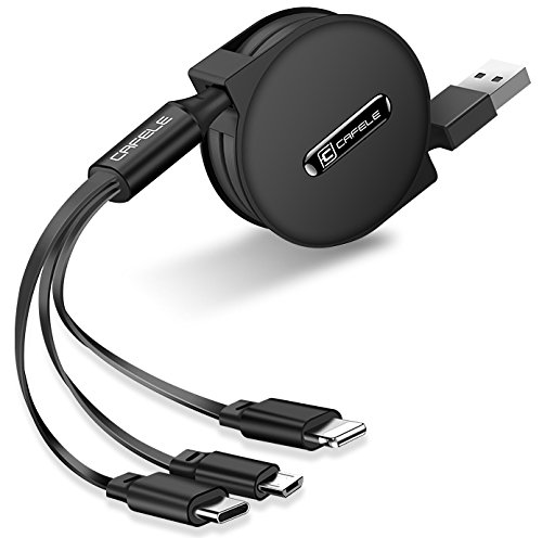 DolDer Cavo di ricarica retrattile 3 in 1 retrattile Micro USB/Type C Retractable compatibile con Samsung Galaxy S21/S20/A72/A52, Huawei P40pro/P30, Xiaomi Note 10 ecc., 1,2 m, nero