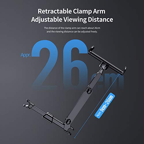 Braccio allungato: il supporto per tablet per poggiatesta dell'auto ha un braccio lungo da 9 cm a 26 cm, forte e flessibile. Può essere facilmente allungato fino a un massimo di 26 cm e offre una visione più accurata dei video e rende la vita più facile.