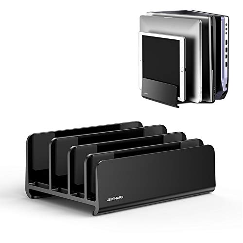 DolDer Supporto verticale per laptop in alluminio con cuscino in schiuma salvaspazio per tablet, MacBook, iPad, PC da gioco, libri, Lenovo adatto per 4 dispositivi (nero)