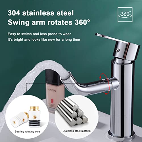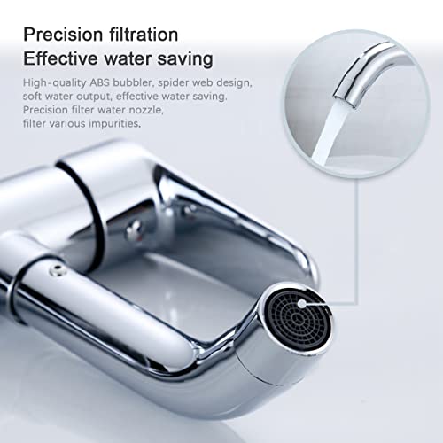 Girevole flessibile: La bocca del rubinetto del bagno è girevole a 360°, facile per l'uso quotidiano, il design è flessibile e pratico. Il rubinetto ha un aeratore che serve a risparmiare circa il 30% di acqua, l'aeratore è asportabile e facile da pulire.