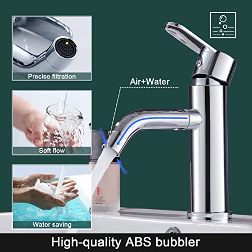 Materiale di qualità: Il rubinetto del lavandino è realizzato in acciaio inossidabile SUS304, senza piombo, ecologico e salutare per la famiglia. La superficie cromata argento è facile da pulire, sembra brillante e come nuova anche dopo molti anni di utilizzo.