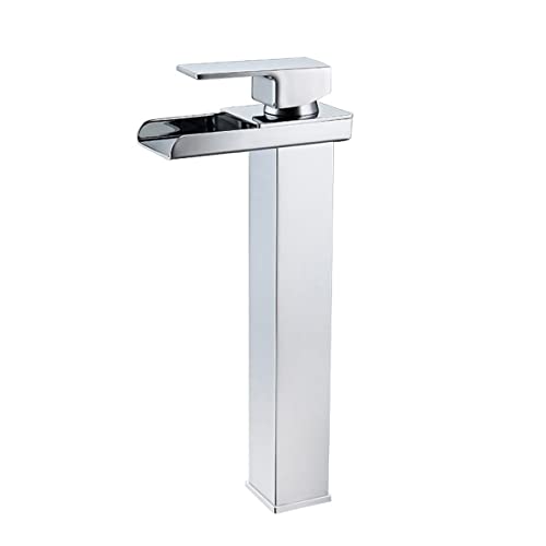 Dolinvo Rubinetto Alto per Bagno Lavabo Cascata Miscelatore Lavabo da Appoggio Monocomando Rettangolare con Tubi Acqua Fredda e Calda Regolabile 304 Acciaio Inox Cromato Argento