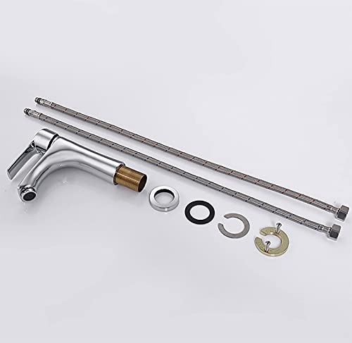 Dolinvo Rubinetto Bagno Lavabo Monocomando Acciaio Inox Cromato Argento Lucido con ABS Aeratore Miscelatore Lavandino Bagno con Tubi Acqua Fredda e Calda Valvola Ceramica Resistente alla Corrosione