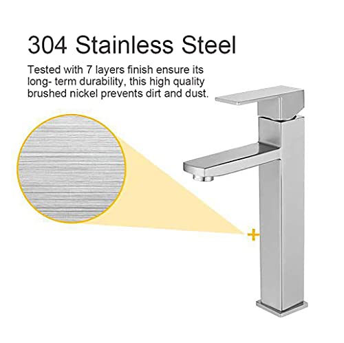 Dolinvo Rubinetto Alto per Lavabo Bagno Quadrato con Aeratore Risparmiare Acqua con Tubi Acqua Fredda e Calda Miscelatore Rettangolare Lavabo da Appoggio Bagno Acciaio Inox Satinato Spazzolato