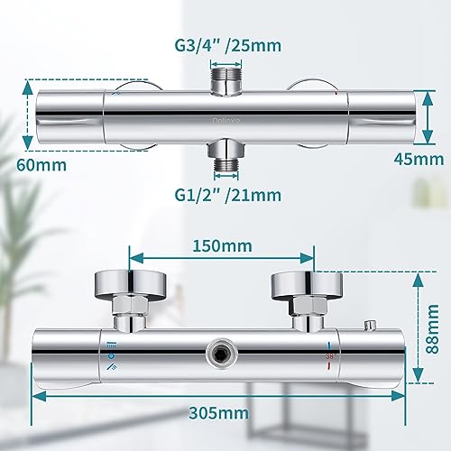 Materiali di alta qualità: il termostato doccia cromato è realizzato in ottone ad alta purezza, resistente alla pressione, inibisce la crescita batterica, non sporca le fonti d'acqua e ha una lunga durata. È inoltre antigraffio e testato per la durata nel test di nebbia salina. (doccetta e soffione non inclusi).