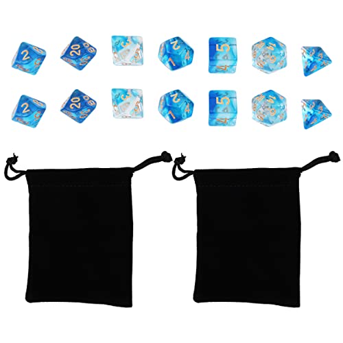 DollaTek dadi poliedrici trasparenti Set giochi da tavolo dadi 2 Set dadi 2 x 7 (14 pezzi) Serie di dadi D20 D12 D10 D8 D6 D4 Dadi DND DND RPG MTG Doppi colori One Piece (Blu)