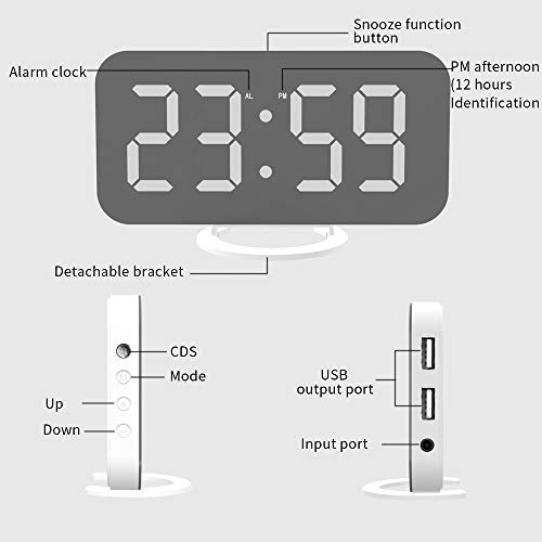 DollaTek Sveglia Digitale - Sveglia Moderna con Porta USB Specchio Digitale Orologio Migliore Orologio Decorativo per Il Tavolo da Pranzo Scrivania - Carattere Bianco