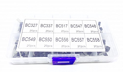 DollaTek 10 Values 200PCS NPN PNP Kit di Transistor di Potenza Assortiti BC327-BC558 Assortiti con Custodia in plastica Trasparente