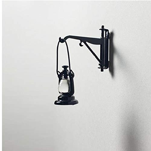 1/12 Dollhouse miniatura Accessori Mini metallo dell'annata olio della lampada di simulazione Barn Lanterna Modello giocattoli per la decorazione della casa Nero