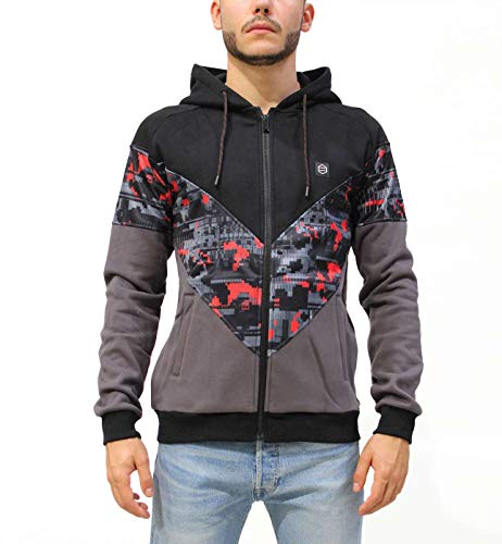 Dolly Noire Virtual Zip Hoodie Felpa Uomo SW380 Black Grey - Taglia M