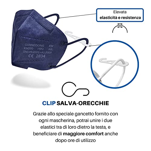 Dolomiti Medical Mascherine FFP2 Certificate CE 5 Strati (75pz, Blu) Confezionate Singolarmente, Ciascuna con Reggi Mascherine dietro la Testa, Elastici Comodi, Nasello Regolabile con Imbottitura