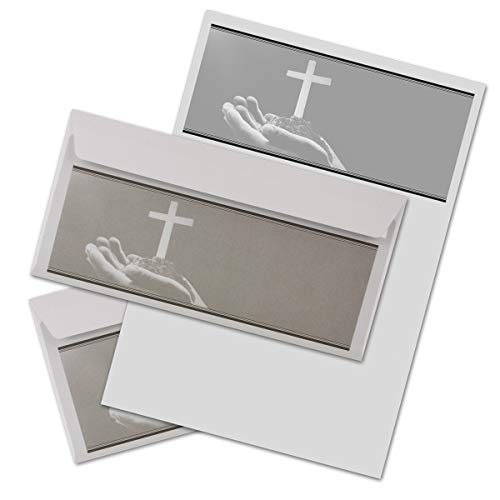 Il Dolore di set//Tristezza Cancelleria/Tristezza Papier Brief Set DIN A4 con buste DIN lungo//Serie: Heinrich - Mani Aperte con croce A4 bianco