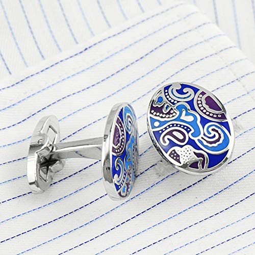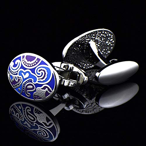 DOLOVE Gemelli Argento Blu Gemelli per Matrimonio Fiore Vintage Ovale Gemelli Camicia Uomo