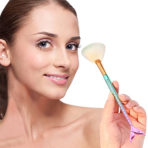 Dolovemk, kit di pennelli da trucco a forma di coda di sirena (10 pezzi), in fibra sintetica kabuki, pennelli da trucco per fondotinta, fard, eyeliner, cipria, accessori di bellezza