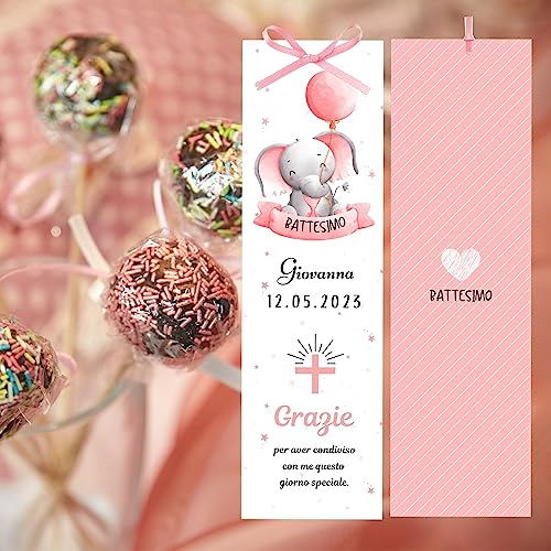 Dolplp! 50pz Segnaposto Battesimo Bimba, Bomboniere Battesimo Segnalibri con Nastro, Allestimento Decorazioni Battesimo Bimba Ringraziamento Addobbi Bigliettini