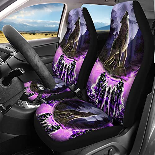 Dolyues Set completo completo di coprisedili universali per auto, con piume di lupo (viola), con sedile anteriore e posteriore, protezione schienale, elastico/traspirante