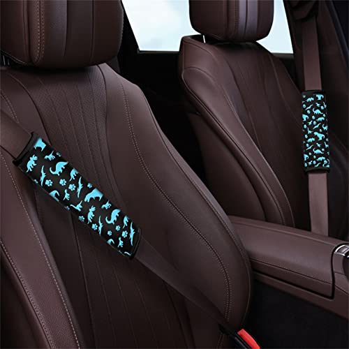 Dolyues Imbottitura per cintura di sicurezza per bambini per spalle e collo, morbida e confortevole, con dinosauro dei cartoni animati, set da 2