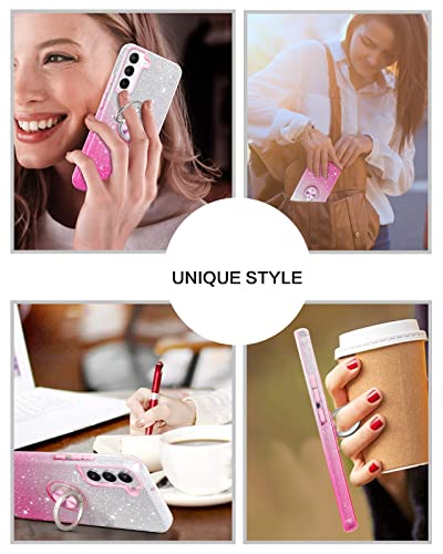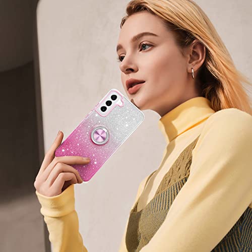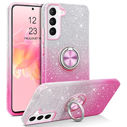DOMAVER Custodia per Samsung Galaxy S22, con brillantini, per Samsung S22 5G, con supporto ad anello a 360 gradi, in silicone TPU, antiurto, antigraffio, per S22 da 6,1", rosa sfumato