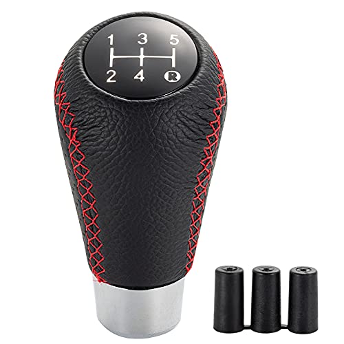 DOMENICA Pomello Leva Cambio Pelle Universale per Auto 5 Marce con 8mm 10mm 12mm Adattatori (Rosso)
