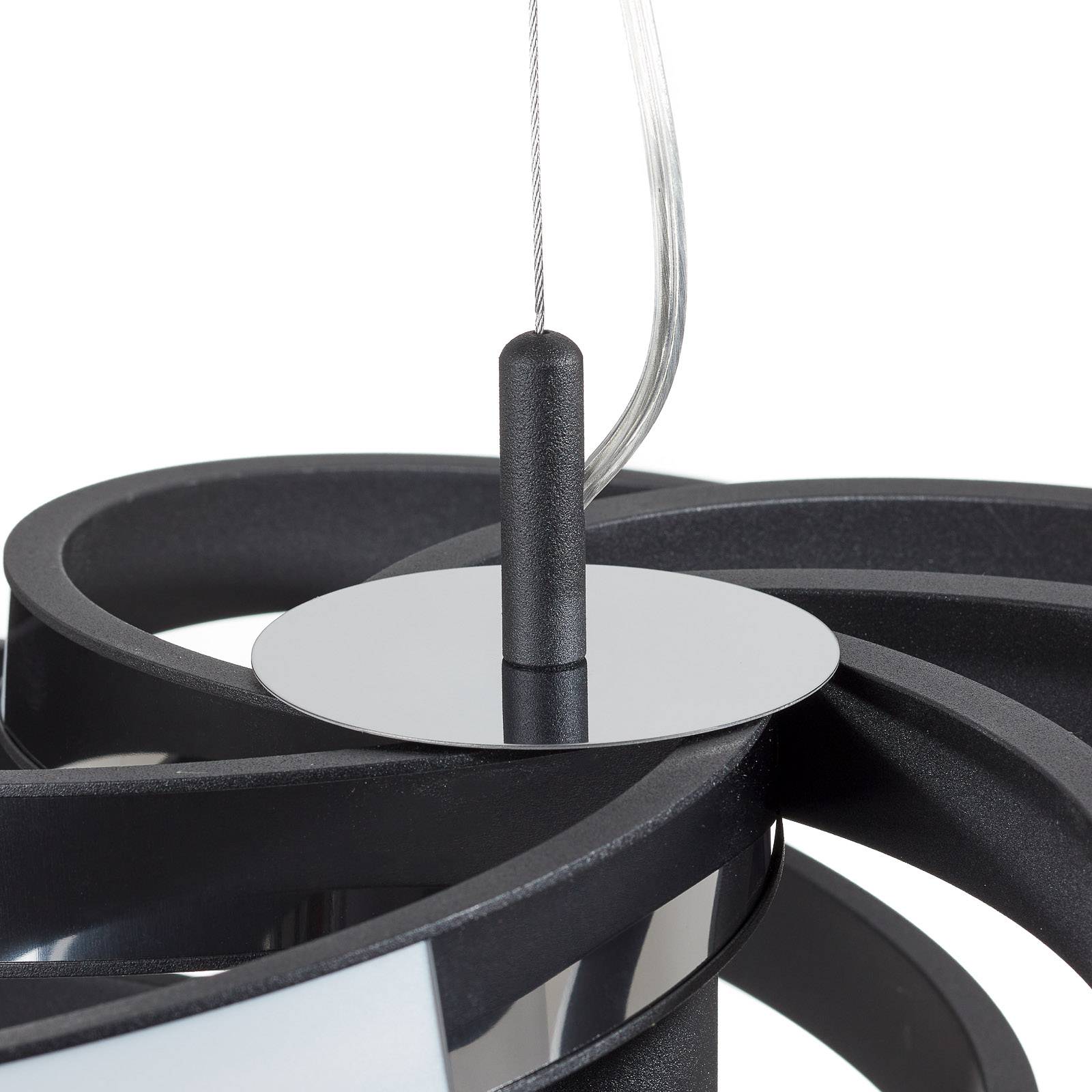 Decorativa e funzionale - Lampada a sospensione a LED Zoya Il design decorativo della lampada a sospensione a LED Zoya è creato da larghe strisce di metallo che si piegano abilmente intorno al corpo della lampada, creando così un look moderno. La luce bianca calda viene emessa dai LED integrati nelle strisce e si irradia nella stanza da tutti i lati. In questo modo si ottiene una solida illuminazione di base per il soggiorno o la sala da pranzo, che non solo ha un bell'aspetto ma fornisce anche una luce sufficiente. La lampada a sospensione LED Zoya può essere regolata tramite un telecomando abbinato, incluso nella fornitura.