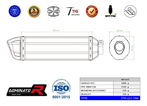DOMINATOR Sistema di scarico Collettore Silenziatore Terminale Marmitta HP1 compatibile con XP 530 T-MAX 2012-2016