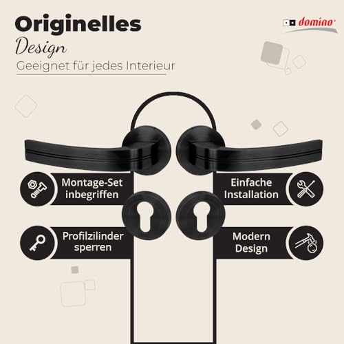 Domino DEKAN-R BLACK - Maniglia per porta con cilindro profilato, per porte di camera, set di maniglie per porte