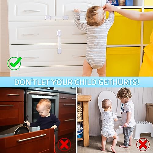 Domkan 10 Pezzi Sicurezza Cassetti Bambini, ferma ante per bambini, per Armadietto,Cassetto,Armadio,Frigorifero, Blocca Cassetti per bambini con 3M Adesivo Nessun Trapano Necessarioc - Bianca